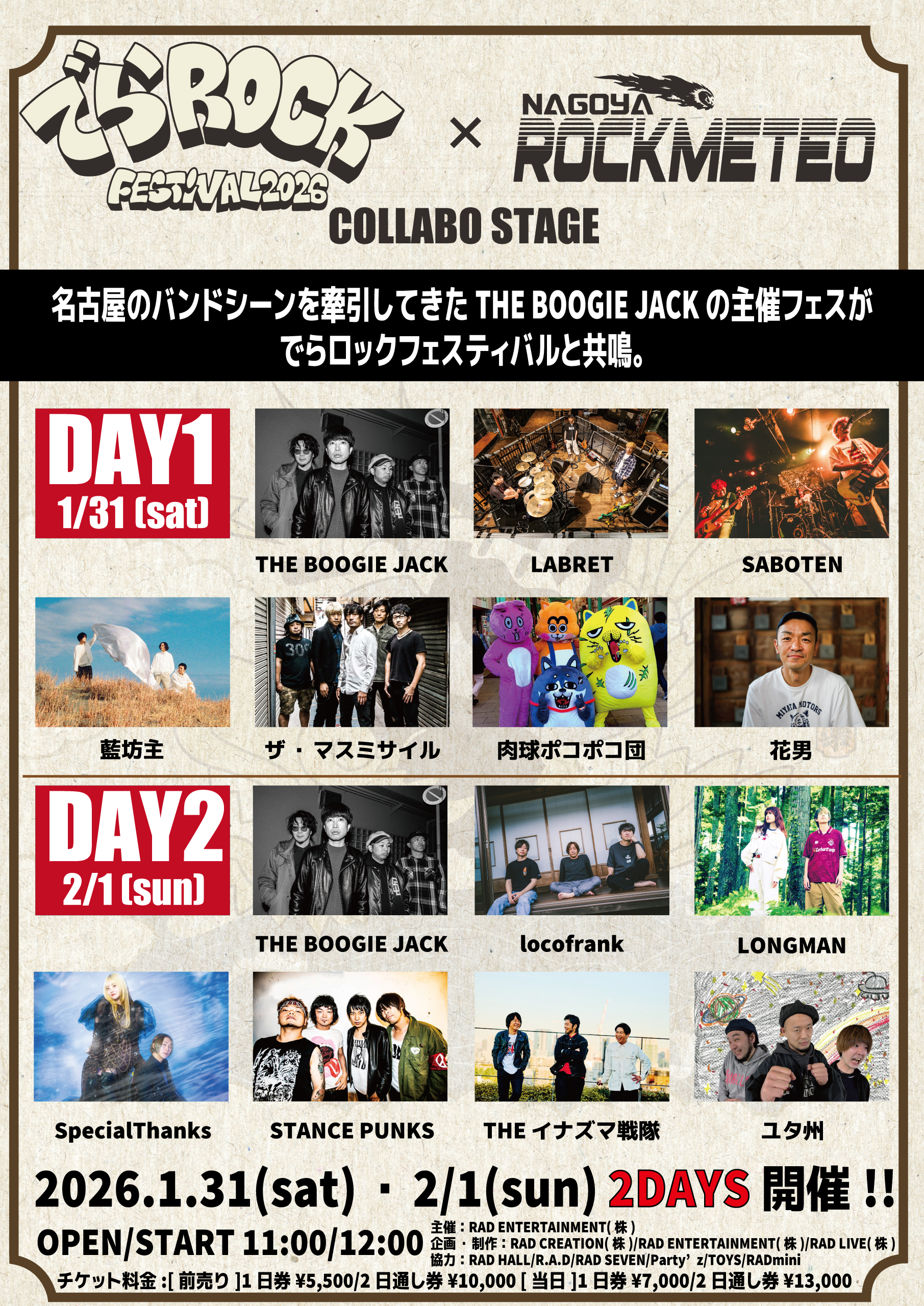 1/31(土)〜2/1(日)新栄/栄/大須エリアのライブハウス15会場以上にて開催される、RAD CREATION & RAD ENTERTAINMENT presents「でらロックフェスティバル 2026」への出演が決定しました!
