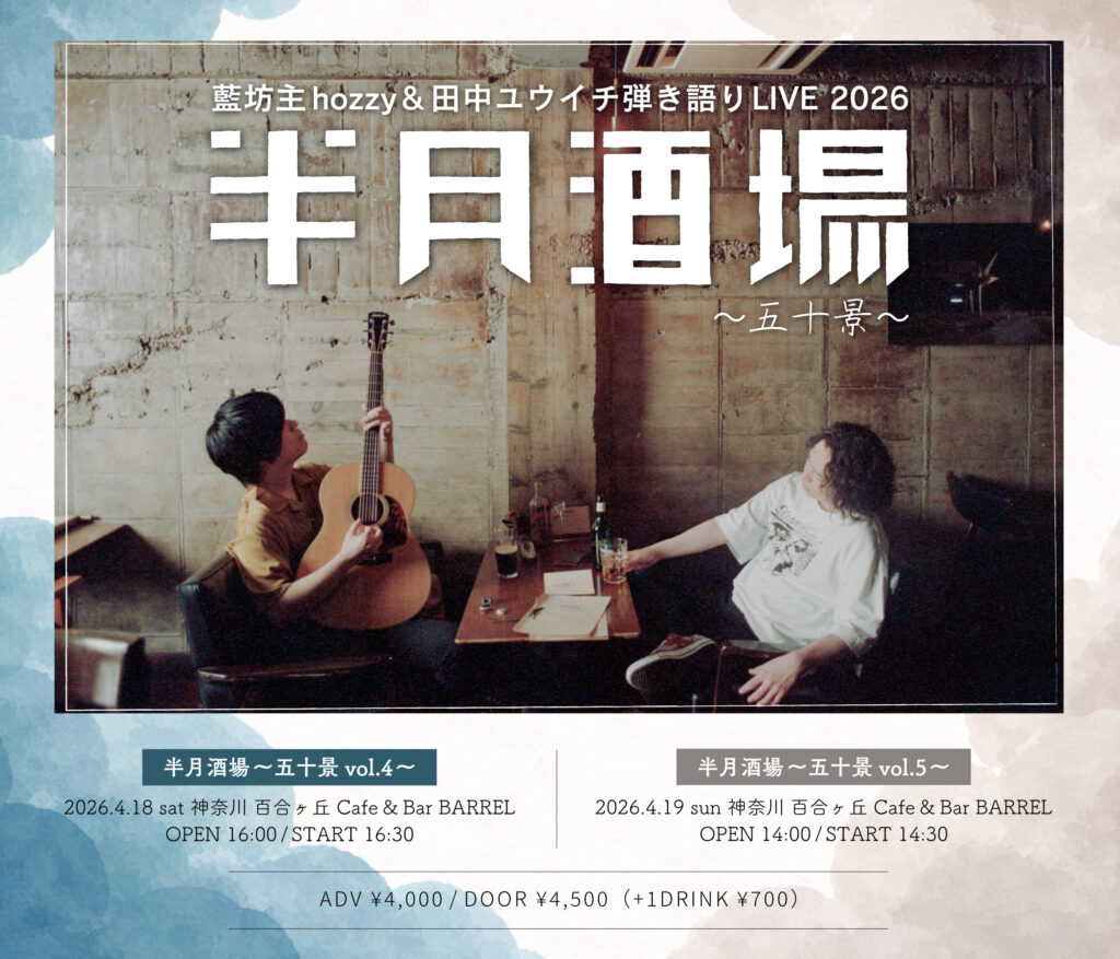 4/18(土)、4/19(日) hozzy & 田中ユウイチによる半月酒場2days公演〜五十景〜の開催が決定!