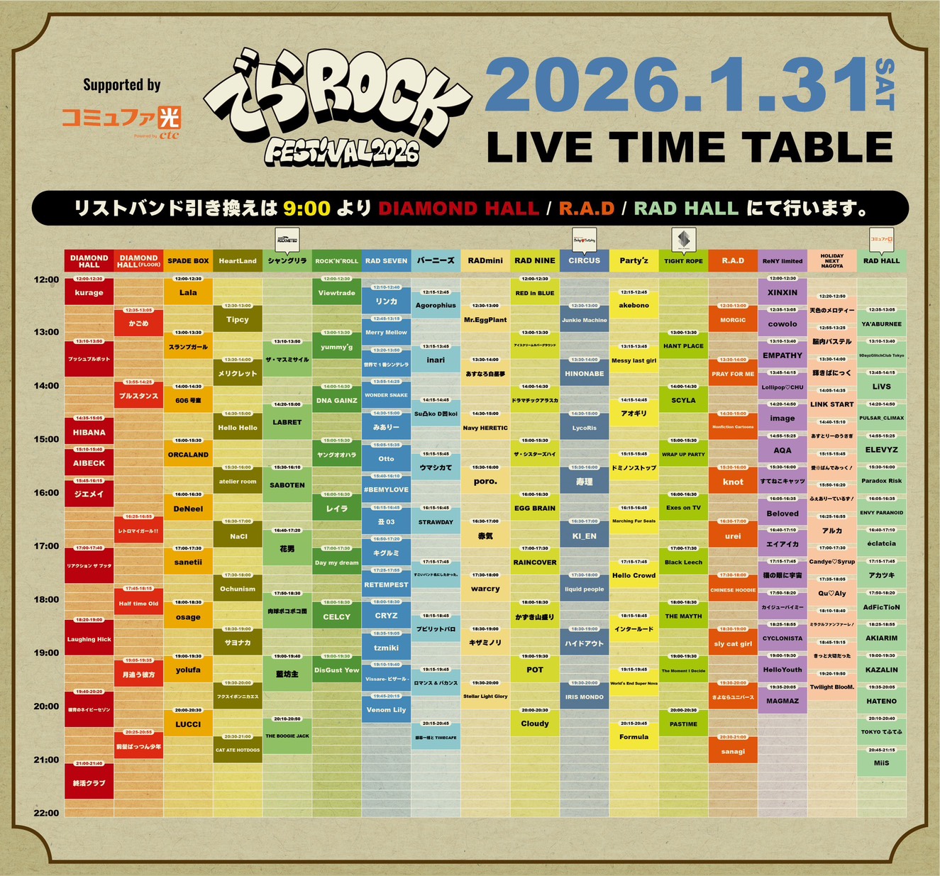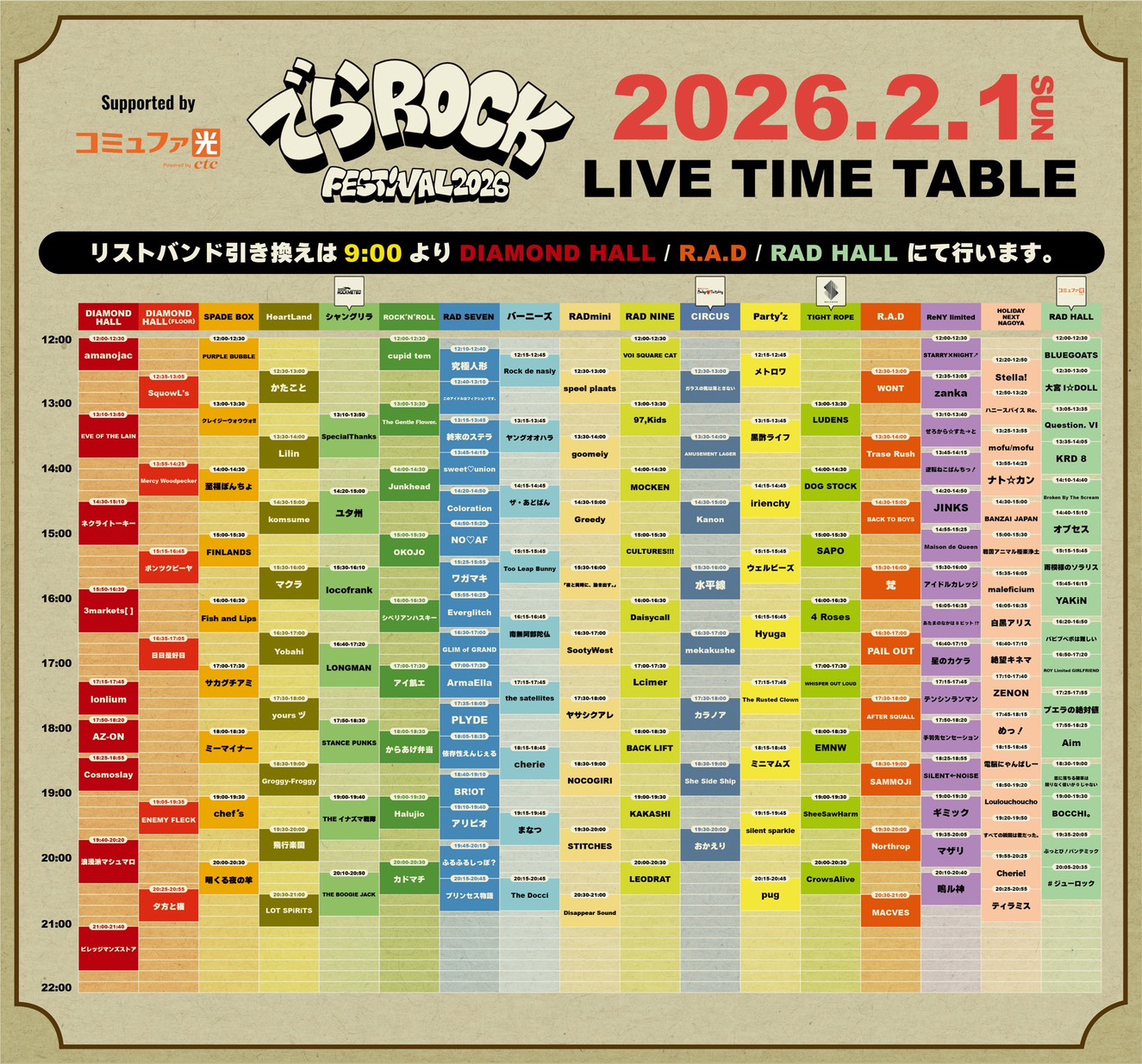 『でらロックフェスティバル 2026』 タイムテーブルが発表されました!